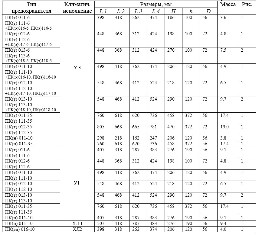 Запобіжники високовольтні серії ПК (т) П (т) 012-6-63-31,5 У3 6-10-35 кВ